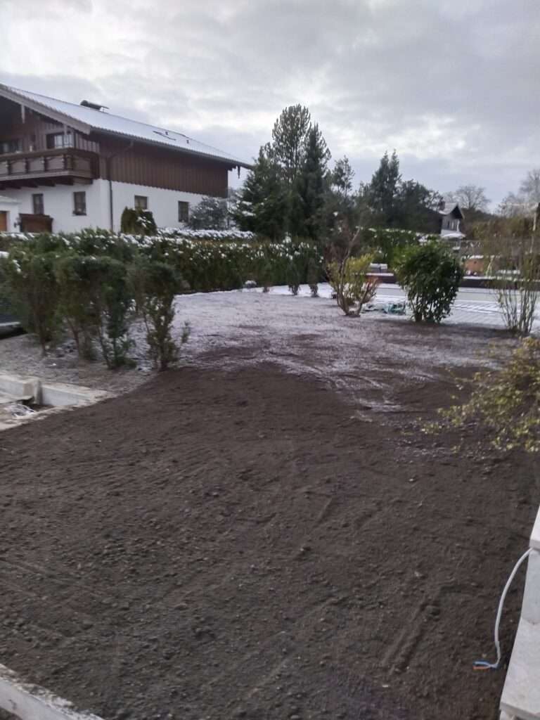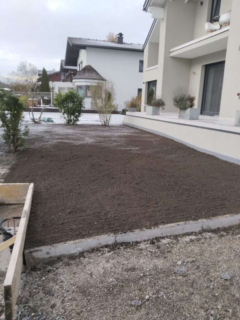 In diesem Projekt haben wir zunächst rund 90 m³ Aushub und Bauschutt entfernt. Anschließend wurden 20 m³ Humuserde in zwei Etagen aufgetragen, wobei die erste Etage sorgfältig mit unserer Rüttelplatte verdichtet wurde. Die Büsche wurden von einem erfahrenen Gärtner gepflanzt, um ein harmonisches Gesamtbild zu schaffen. Das Ergebnis ist ein frisch gestalteter Garten, der funktional und optisch überzeugt.