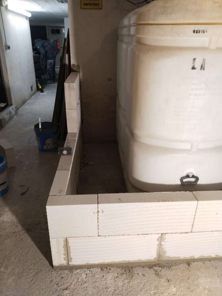 Gemeinsam mit unserem Partnerunternehmen haben wir in diesem Projekt eine brandschutzsichere Abtrennung zwischen Keller- und Tankraum geschaffen. Dafür wurde eine REI 120-Wand aus 10 cm dicken Ytong-Steinen errichtet und eine Tankluke in REI 30 integriert. Damit erfüllt der Kunde die geltenden Anforderungen der Gemeinde und sorgt für maximale Sicherheit in seinem Gebäude.