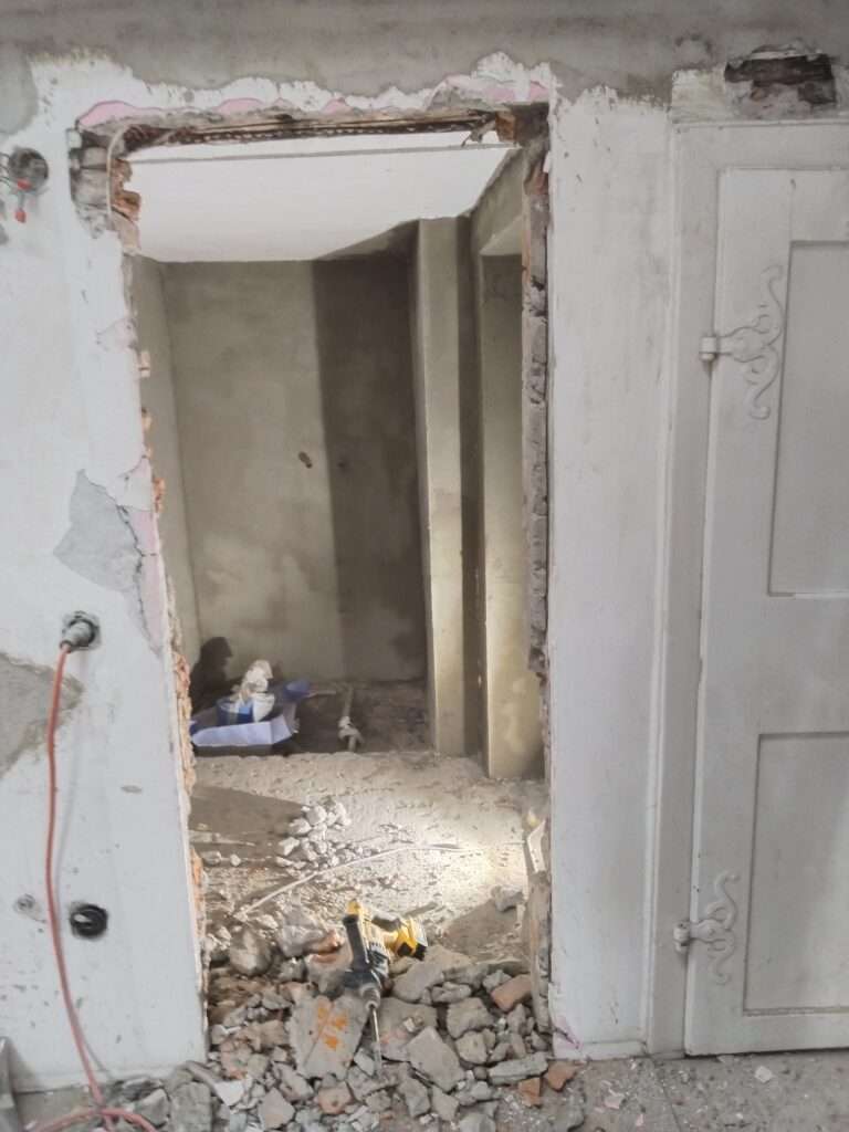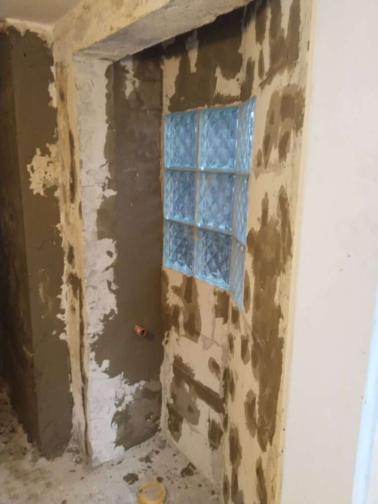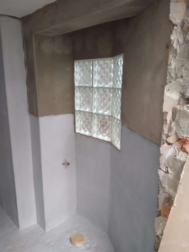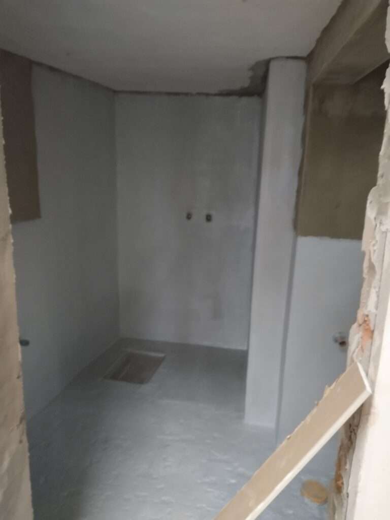 In diesem Projekt wurde das Badezimmer vollständig renoviert und für eine langlebige Nutzung vorbereitet. Zunächst haben wir das gesamte Bad mit Weber grob verputzt und den Boden mit Moldan Fast 330 nivelliert, um eine perfekte Basis zu schaffen. Der alte Türstock wurde entfernt, um Platz für eine moderne Optik zu schaffen. Anschließend erfolgte die Isolierung des Badezimmers mit Mapei Gum, um dauerhaften Schutz gegen Feuchtigkeit zu gewährleisten. Für das finale Design wurden elegante graue Bodenfliesen und strahlend weiße Wandfliesen verlegt, die dem Raum eine frische und stilvolle Atmosphäre verleihen.