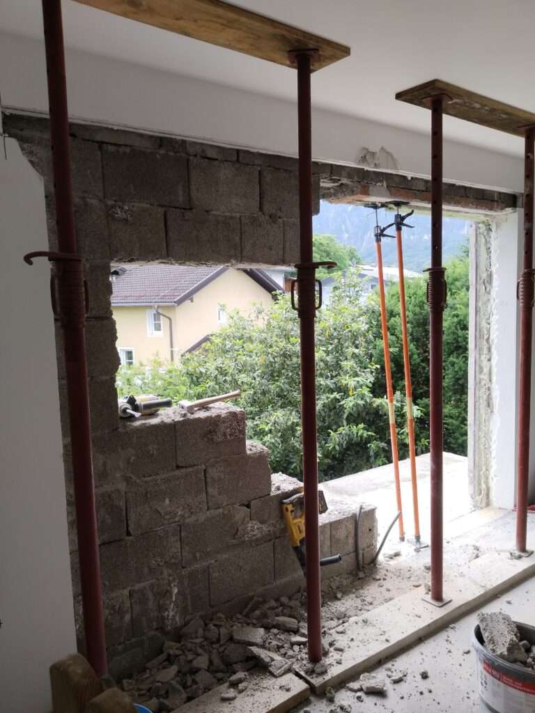 Bei diesem Projekt wurde die alte Balkontür entfernt und die Öffnung von 1,4 auf beeindruckende 3 Meter erweitert. Wir haben zwei stabile Stürze mit je 3,5 Metern eingebaut und die Leibungen fachgerecht verputzt. Gemeinsam mit unserem Partnerunternehmen Lagerhaus Abtenau wurde die neue, großzügige Balkontür montiert. Innen und außen wurden die Leibungen fein verputzt und der Innenbereich anschließend weiß gestrichen. Die notwendigen Elektroinstallationen übernahm unser zuverlässiger Partner ETEC, wodurch das Projekt rundum professionell abgeschlossen wurde.