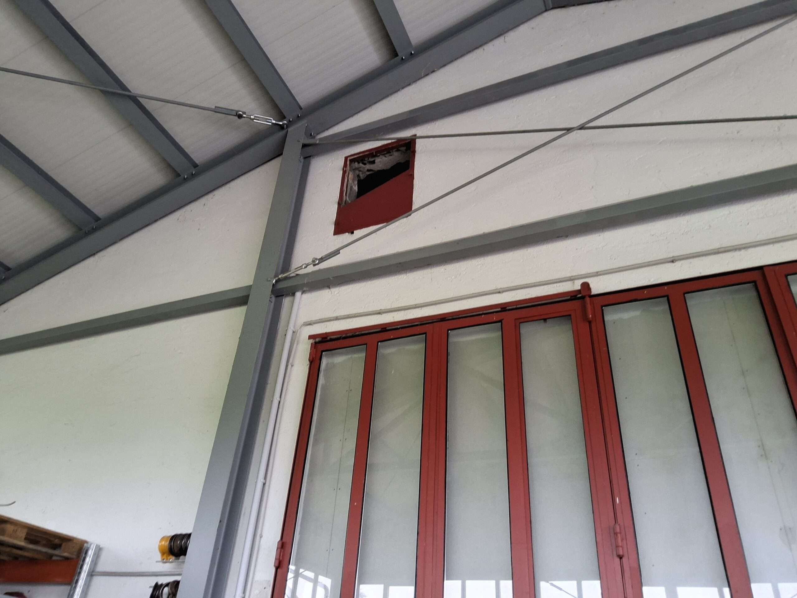 Zusätzlich haben wir eine Revisionsluke (85 × 135 cm) in 7 m Höhe mit demselben GK-Feuerschutzaufbau (3 × 15 mm) fachgerecht verschlossen.