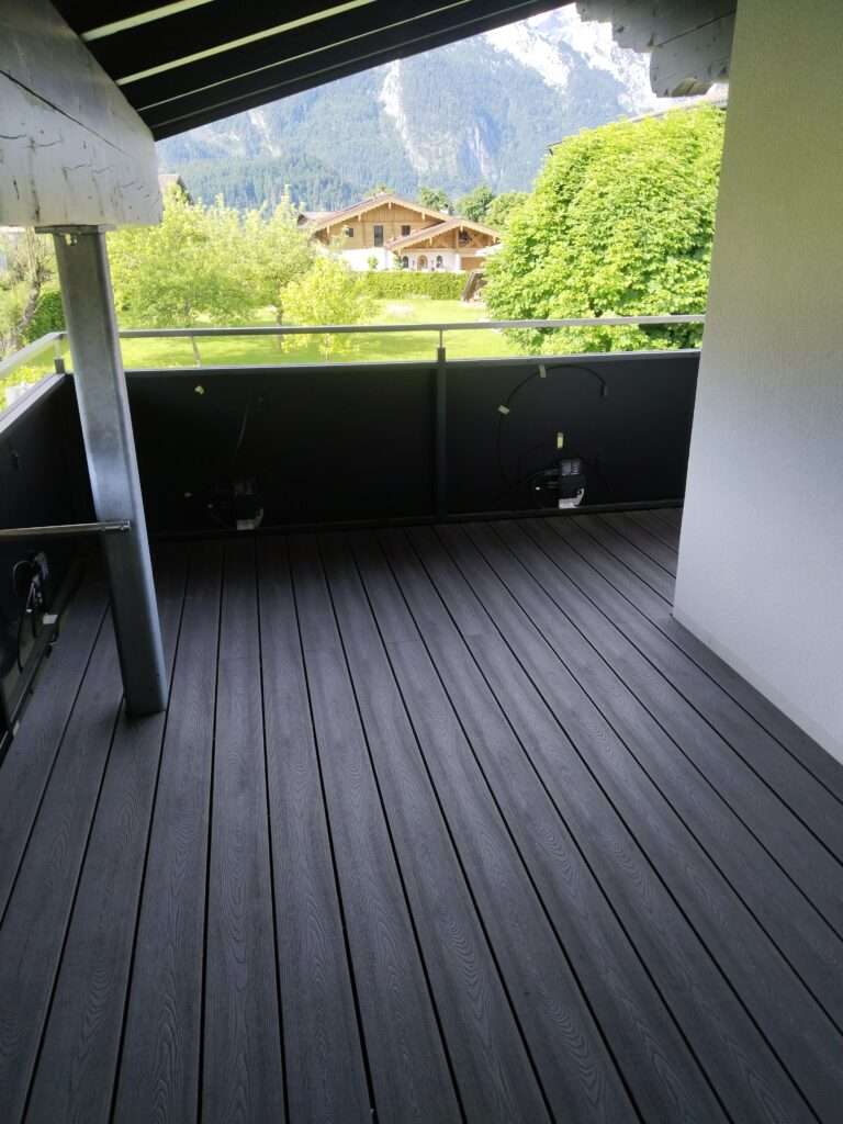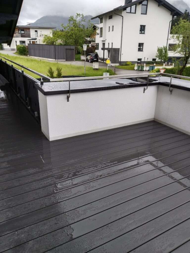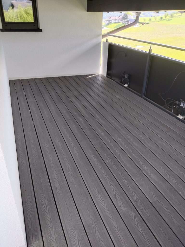 Auf diesem Balkon in Abtenau haben wir eine moderne und pflegeleichte Lösung mit WPC-Dielen umgesetzt. Zuerst wurde eine stabile Unterkonstruktion aus Aluschienen verlegt, um eine dauerhafte Basis zu schaffen. Daraufhin haben wir die WPC-Dielen fachgerecht mit Klammern befestigt. Das Ergebnis ist ein langlebiger, wetterbeständiger und stilvoller Balkonboden, der optimalen Komfort und ansprechende Optik miteinander vereint.