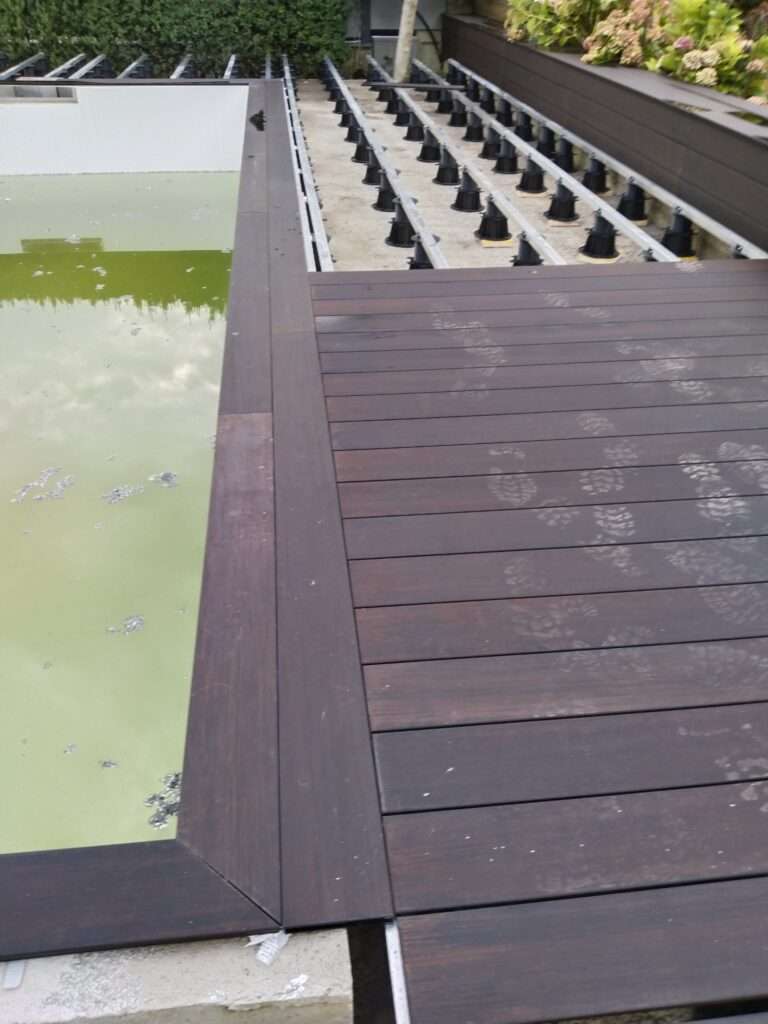 Pool-Terrasse und Mauer mit Bambus verkleiden