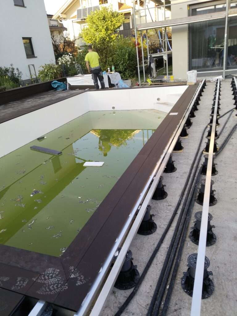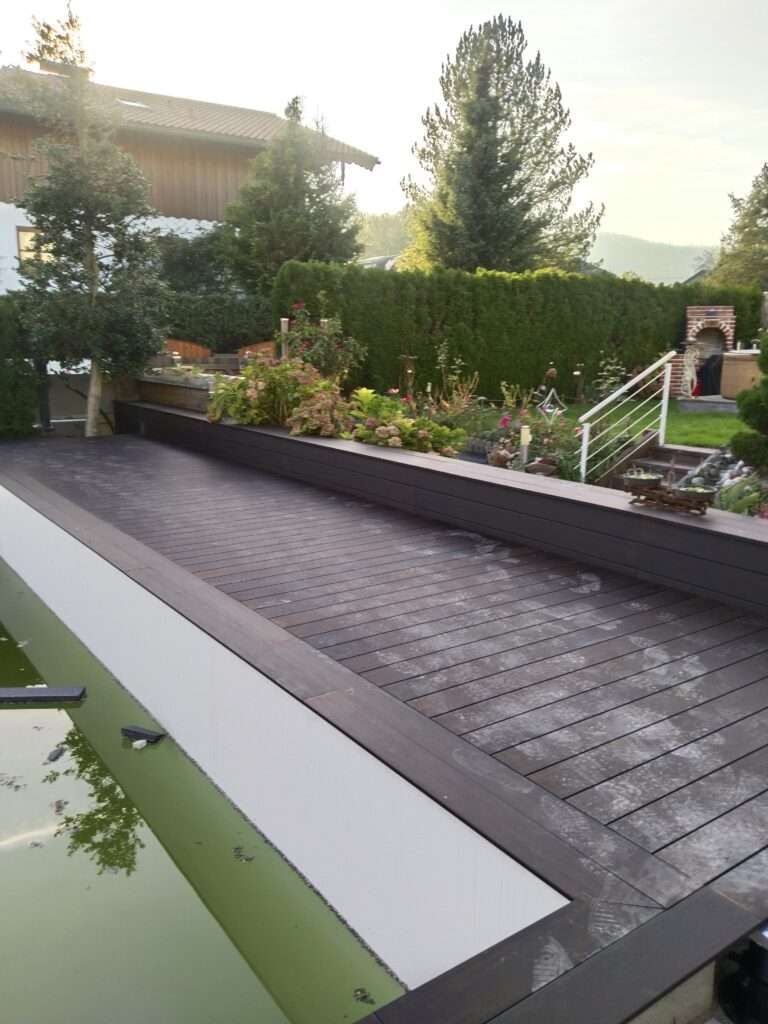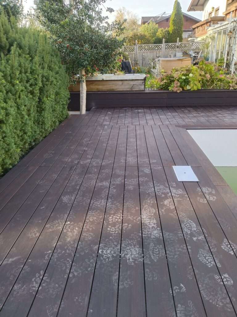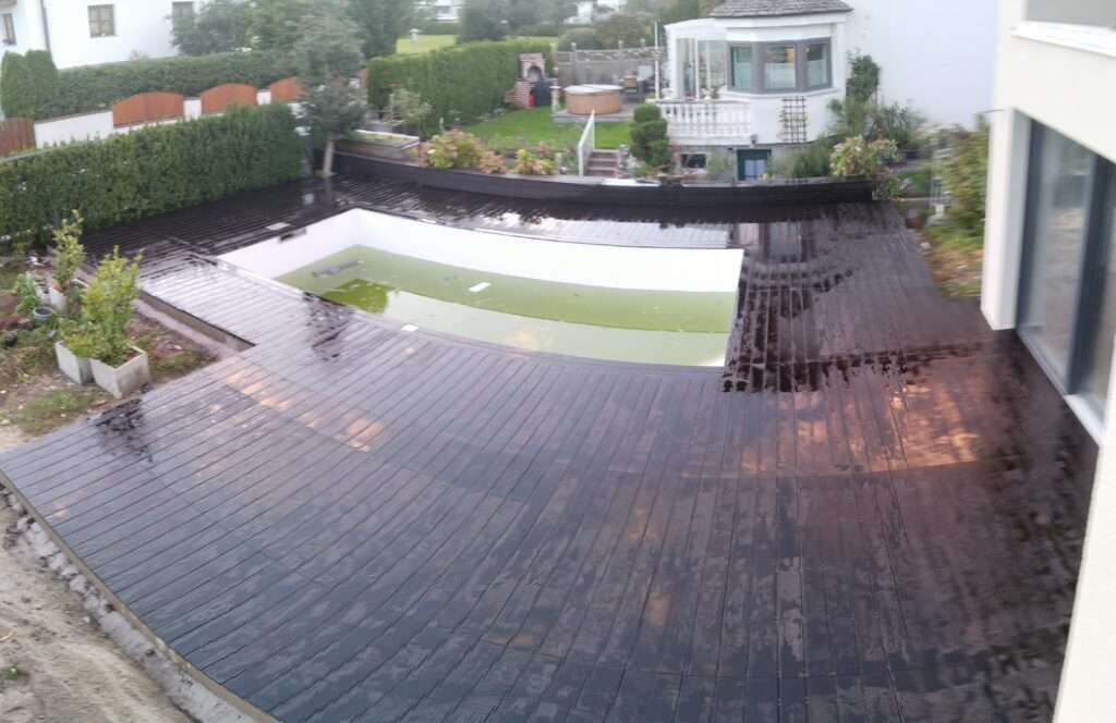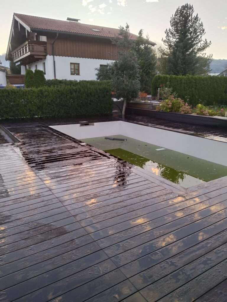 In diesem Projekt wurde die Pool-Terrasse rundum mit modernen Bambus-Elementen verkleidet, die dem Außenbereich ein frisches, naturverbundenes Ambiente verleihen. Auch die angrenzende Mauer wurde stilvoll mit Bambus versehen, um ein harmonisches Gesamtbild zu schaffen. Die hochwertige Verarbeitung sorgt nicht nur für eine ansprechende Optik, sondern auch für Langlebigkeit und Witterungsbeständigkeit. Ein echter Hingucker für den Garten!