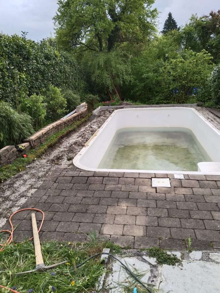 In Salzburg haben wir die Umrandung eines Pools umfassend renoviert. Zuerst wurden die alten Pflastersteine rund um den Pool entfernt. Daraufhin haben wir neue Randsteine mit Moldan B30 Trockenbeton gesetzt, um eine stabile und dauerhafte Grundlage zu schaffen. Anschließend wurde frischer Verlege-Kies aufgetragen, um die Fläche für die neuen Pflastersteine vorzubereiten. Schließlich wurden die alten Pflastersteine wieder verlegt und gründlich mit einer Rüttelmaschine verdichtet, um eine gleichmäßige und sichere Umrandung für den Pool zu gewährleisten.