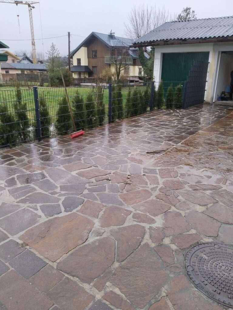 Gartenweg mit neuen Naturstein-Fliesen verkleben