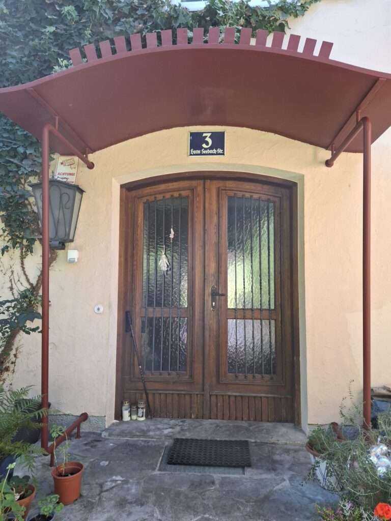 Das Vordach wurde vollständig abgeschliffen, anschließend mit Rostschutzfarbe zweimal gestrichen und danach zweifach mit Metalllack lackiert. Ergebnis: zuverlässiger Korrosionsschutz, witterungsbeständige Oberfläche und ein sauberes, gleichmäßiges Finish für viele Jahre.