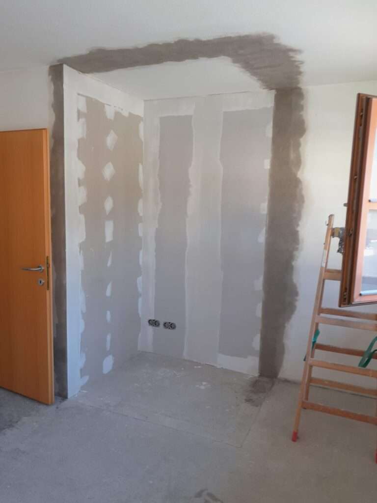 In St. Johann haben wir ein umfassendes Trockenbauprojekt durchgeführt, das einen vollständigen Umbau der Innenwände beinhaltete. Zwei bestehende Wände wurden entfernt und anschließend in umgekehrter Anordnung im Trockenbau neu aufgebaut. Die neuen Wände wurden mit Dämmwolle isoliert und sowohl mit USB-Platten als auch Gipskartonplatten verkleidet. Auch die Elektroinstallationen wurden entsprechend angepasst. Nach dem Aufbau wurden die Wände und Decken in Q3-Qualität verspachtelt und geschliffen. Der Boden, wo die alte Wand stand, wurde mit Estrich erneuert. Zudem haben wir den alten Holzboden entfernt und entsorgt sowie den Estrich geschliffen. Abschließend wurde alles mit Mapei Haftgrund behandelt und mit Mapei Dursulitte in Weiß zweimal gestrichen. Alle Anschlussfugen wurden sorgfältig mit Acryl geschlossen, um ein perfektes Finish zu gewährleisten.